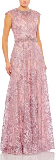 Women’s Lace Embellished Cap Sleeve Formal Gown
