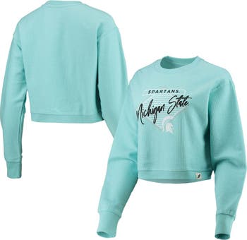 Women's League Collegiate Wear Light Blue Michigan State Spartans Corded Timber Crop Pullover Sweatshirt