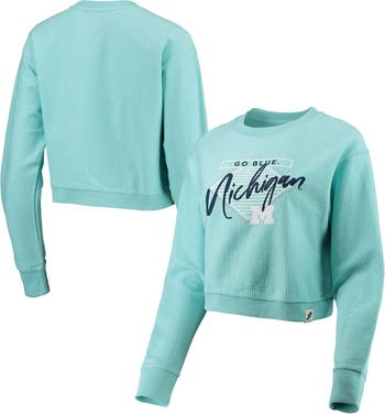 Women's League Collegiate Wear Light Blue Michigan Wolverines Corded Timber Crop Pullover Sweatshirt