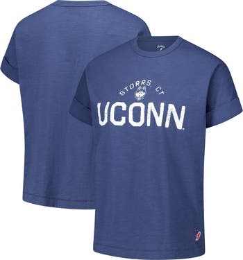 Embrace your UConn Huskies pride with this comfortable and stylish Slub Rolled Cuff T-Shirt from League Collegiate Wear. This stylish top features dolman sleeves with rolled cuffs and a boxy fit for a relaxed, comfortable feel. The distressed screen print graphics across the front add a vintage touch to this classic UConn Huskies tee.