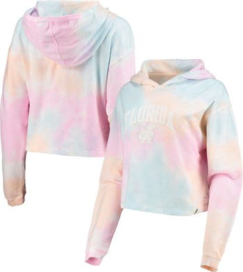 Women's League Collegiate Wear Pink/White Florida Gators Tie-Dye Cropped Pullover Hoodie