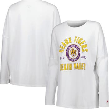 The Women's League Collegiate Wear White LSU Tigers Clothesline Oversized Long Sleeve T-shirt is the perfect way to show your support for the LSU Tigers. With its distressed screen print graphics, dropped shoulders, and two side splits hem, this shirt is both stylish and comfortable. Made from 100% cotton, this shirt is sure to keep you cool and comfortable all game long. Whether you're cheering on the Tigers from the stands or just relaxing at home, this shirt is the perfect way to show your team spirit.