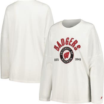 Women's League Collegiate Wear White Wisconsin Badgers Clothesline Oversized Long Sleeve T-Shirt