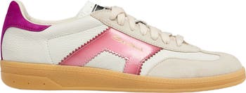The new DBS Oly sneaker is an authentic expression of Santoni's DNA. This style reimagines the classic '70s tennis shoe, updating its retro aesthetic with modern functionality and refined materials. Santoni's signature double-buckle detail in elegant gradated leather enriches the sides of its leather and suede silhouette, borrowed from our formal footwear edit and transformed into an emblem of modern style.