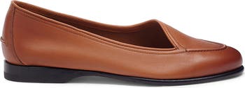 A chic essential for everyday wear. This ballet flat offers an ultra-feminine interpretation of the archival Andrea loafer, crafted from luxurious nappa leather with our artisanal “velatura” gradated finish: a symbol of Santoni's unparalleled savoir-faire. Its asymmetrical cut gracefully elongates the lines of the foot, whilst adding a graphic edge to any look.