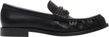 A pair of penny loafers made in Italy from supple calf leather, hand-stitched for a gathered effect. The front is detailed with an enamelled Knight stamp plaque, an archival motif first seen on Burberry bags in the 1980s. The leather sole features a rubber Equestrian Knight Design in signature Knight Blue.||Rounded toe|Quilted leather insole|Equestrian Knight Design at sole|Comes with a dust bag