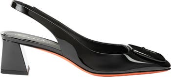 This slingback unites Santoni's sophisticated charm with a chic silhouette designed to keep up with the dynamic pace of everyday life. Crafted from shiny patent leather, its sculptural lines are elevated with a square toe and enamelled detail that pays homage to our signature double-buckle shoe.