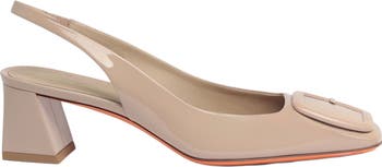 This slingback unites Santoni's sophisticated charm with a chic silhouette designed to keep up with the dynamic pace of everyday life. Crafted from shiny patent leather, its sculptural lines are elevated with a square toe and enamelled detail that pays homage to our signature double-buckle shoe.