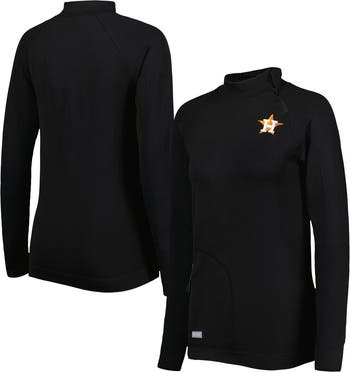 The Women's Levelwear Black Houston Astros Verse Asymmetrical Raglan Tri-Blend Quarter-Zip Jacket is the perfect way to show your support for the Houston Astros. This lightweight jacket is made of a comfortable polyester, nylon, and spandex blend and features embroidered graphics that proudly display your team pride. The asymmetrical design and mock neck add a stylish touch, while the front zippered pocket provides convenient storage for your essentials. Whether you're cheering on the Astros at the stadium or just showing your support around town, this jacket is sure to become a favorite.
