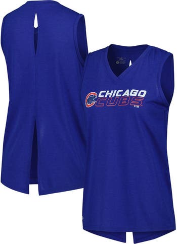 The Women's Levelwear Royal Chicago Cubs Paisley Chase V-Neck Tank Top is the perfect way to show your support for the Chicago Cubs. Made from a comfortable polyester and cotton blend, this tank top features a stylish V-neck, sleeveless design, and screen print graphics that proudly display your Chicago Cubs pride. The slit at the back and keyhole at the back of the neck add a touch of femininity, making this tank top perfect for any Cubs fan.