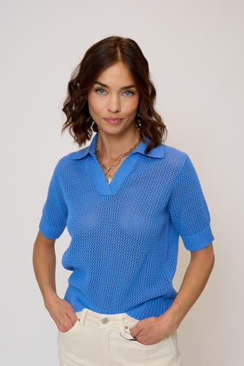 The Liana Fitted Polo is your new warm-weather staple, designed with a breezy open-knit texture that keeps things light, airy, and totally comfortable. A classic collar meets an open V-neckline for an effortlessly chic touch, while the short sleeves and ribbed hem offer a flattering, easy fit. Whether you're styling it with denim for a relaxed look or dressing it up with tailored trousers, this polo brings laid-back elegance to any outfit.