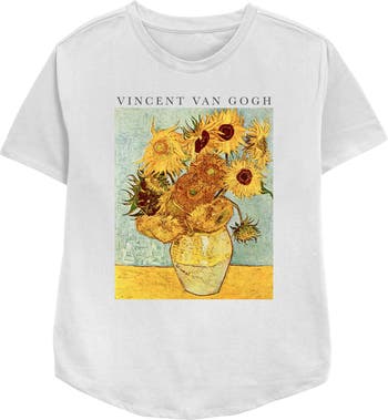 - Strut your stuff with this stylish new women's relaxed fit t-shirt that is perfect for every occasion! Featuring a large graphic of Vincent Van Gogh's Vase with Twelve Sunflowers printed across the front.