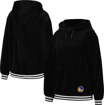 The Women's Lusso Black Golden State Warriors Nellie Oversized Velour Pullover Hoodie is the ultimate way to show unwavering support for the Golden State Warriors. Crafted from a soft cotton and polyester blend, this midweight hoodie ensures comfort and warmth during chilly game days. Embroidered graphics proudly display the Golden State Warriors logo, while the oversized fit, rib-knit cuffs, and hem provide a relaxed and stylish look. Whether cheering from the stands or showing support, this hoodie is the perfect way to represent the Golden State Warriors in style.