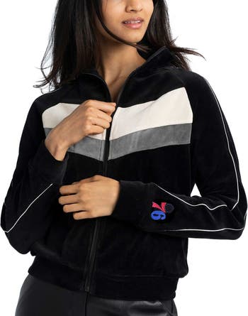 When the weather cools, stay warm in style with this Philadelphia 76ers Nixie full-zip track jacket from Lusso. It features a color-block chevron design and the Philadelphia 76ers logo embroidered between contrasting piping. Raglan sleeves provide a natural range of motion for more comfortable wearing.