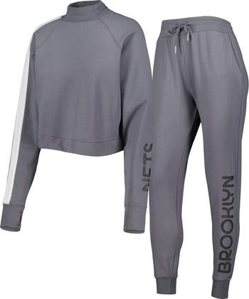 Women's Lusso Charcoal Brooklyn Nets Maddie & Matildas Raglan Tri-Blend Pullover Hoodie & Jogger Pants Set