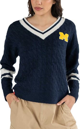 Wrap yourself in cozy Michigan Wolverines spirit with this Lusso Stella Cable Knit V-Neck Pullover Sweater. This cotton pullover sweater is lightweight, making it ideal for those crisp fall days in Ann Arbor. With its relaxed fit and classic cable knit design, this sweater is perfect for showcasing your Michigan pride in style.