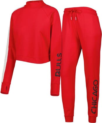 Women's Lusso Red Chicago Bulls Maddie & Matildas Raglan Tri-Blend Pullover Hoodie & Jogger Pants Set