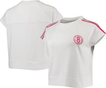 Women's Lusso White Brooklyn Nets Margot Cropped Tri-Blend Cap Sleeve Sweatshirt