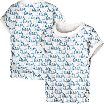 Celebrate your unwavering support for the Los Angeles Dodgers with the Women's Lusso White Los Angeles Dodgers Madge Dolman Tri-Blend T-Shirt. This stylish tee features a comfortable drop shoulder and elastic waist hem, ensuring a flattering fit. The French terry lining provides warmth and comfort, while the allover screen print graphics proudly display your Los Angeles Dodgers pride. Whether you're cheering from the stands or simply showing your support, this tri-blend t-shirt is the perfect way to represent your favorite team.