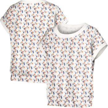 The Women's Lusso White New York Mets Madge Dolman Tri-Blend T-Shirt is the perfect way to show your support for the New York Mets. Made from a soft and comfortable cotton, modal, and spandex blend, this t-shirt features a drop shoulder, elastic waist hem, and French terry lining for added comfort. The allover screen print graphics of the New York Mets logo and Madge the Mets mascot will let everyone know who you're rooting for. Whether you're at the game or just hanging out, this t-shirt is a great way to show your Mets pride.