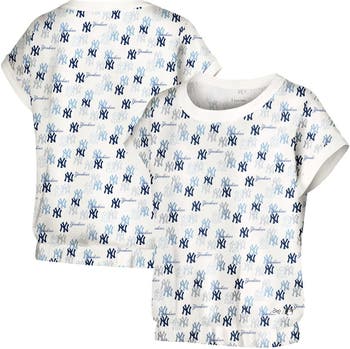 The Women's Lusso White New York Yankees Madge Dolman Tri-Blend T-Shirt is the perfect way to show your support for the New York Yankees. Made from a soft and comfortable cotton, modal, and spandex blend, this t-shirt features a drop shoulder, elastic waist hem, and French terry lining for added comfort. The allover screen print graphics of the New York Yankees logo and wordmark will let everyone know who you're rooting for. Whether you're at the game or just cheering from home, this t-shirt is a must-have for any New York Yankees fan.