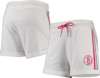Women's Lusso White/Pink Brooklyn Nets Melody Cuffed Tri-Blend Shorts