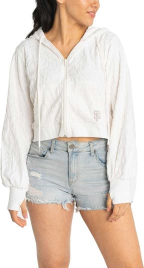 The Women's Lusso White San Francisco Giants Tabitha Cheetah Terry Full-Zip Sweatshirt is the perfect way to show your support for the San Francisco Giants. Made from soft and comfortable cotton, this sweatshirt features embroidered graphics that proudly display your team pride. The lightweight design makes it perfect for mild temperatures, while the two front pockets provide convenient storage for your essentials. Whether you're cheering on the Giants at the ballpark or just relaxing at home, this sweatshirt is sure to keep you comfortable and stylish.