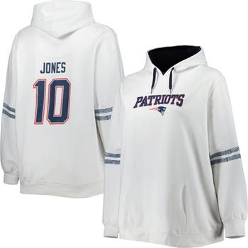 The Women's Mac Jones White New England Patriots Plus Size Name & Number Pullover Hoodie is the perfect way to show your support for the New England Patriots. This midweight hoodie is made of a soft cotton and polyester blend, making it comfortable to wear all season long. Distressed details and contrast-color hood lining add a touch of style, while screen-printed graphics proudly display your favorite player's name and number. Whether you're cheering on the Patriots from the stands or relaxing at home, this hoodie is sure to keep you warm and comfortable.