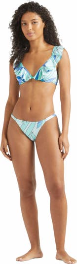 A flattering bikini top adorned with ruffles on the shoulders and neckline in a tropical-inspired print. Crafted from Synthetic and elastane for perfect movement and shape.