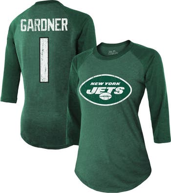 Women's Majestic Threads Ahmad Sauce Gardner Green New York Jets Player Name & Number Tri-Blend 3/4-Sleeve Fitted T-Shirt