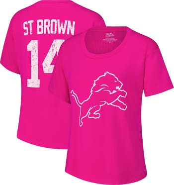 Women's Majestic Threads Amon-Ra St. Brown Pink Detroit Lions Name & Number T-Shirt