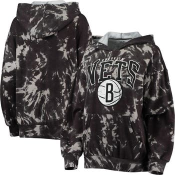 The Women's Majestic Threads Black Brooklyn Nets Burble Tie-Dye Tri-Blend Pullover Hoodie is the perfect way to show your support for the Brooklyn Nets. Made from a soft and comfortable rayon, polyester, and spandex blend, this hoodie features distressed screen print graphics that give it a unique and stylish look. The fleece lining will keep you warm on chilly days, and the front pouch pocket is perfect for storing your essentials. Whether you're cheering on the Nets at the game or just relaxing at home, this hoodie is sure to become a favorite.
