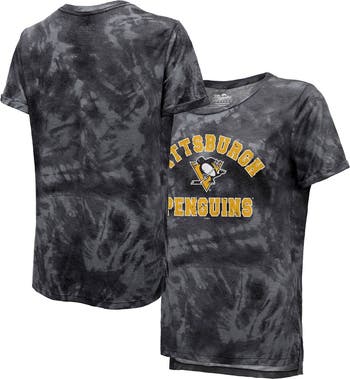 Women's Majestic Threads Black Pittsburgh Penguins Boyfriend Tie-Dye Tri-Blend T-Shirt