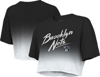 The Women's Majestic Threads Black/White Brooklyn Nets Dirty Dribble Tri-Blend Cropped T-Shirt is the perfect way to show your support for the Brooklyn Nets. This stylish and comfortable shirt features a cropped design, distressed details for a vintage look, and a sublimated gradient design that will make you stand out from the crowd. Made from a soft and durable polyester, cotton, and rayon blend, this shirt is perfect for any occasion, whether you're cheering on the Nets at the game or just relaxing at home.