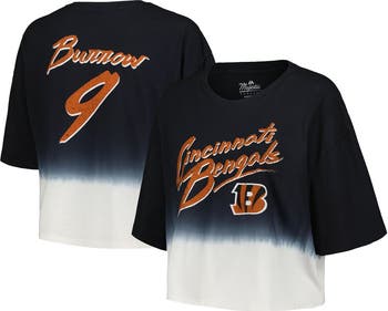Women's Majestic Threads Joe Burrow Black/White Cincinnati Bengals Dip-Dye Player Name & Number Crop Top