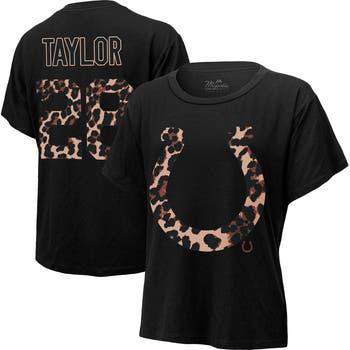 Women's Majestic Threads Jonathan Taylor Black Indianapolis Colts Leopard Player Name & Number T-Shirt