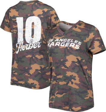 Show off your Los Angeles Chargers pride with a touch of Justin Herbert flair by grabbing this Camo T-shirt. Along with a classic V-neck, it offers extra-soft tri-blend to keep you comfortable no matter the outfit you put together. Plus, the contrasting Los Angeles Chargers graphics on the chest and Justin Herbert's name and number on the back elevate your fandom from all directions.