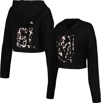 Women's Majestic Threads Mark Stone Black Vegas Golden Knights Leopard Print Name & Number Cropped Pullover Hoodie