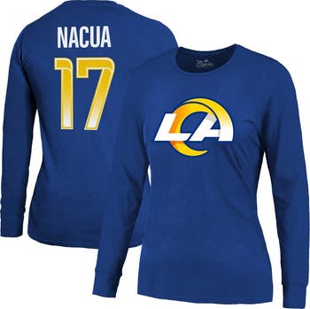 Women's Majestic Threads Puka Nacua Royal Los Angeles Rams Player Name & Number Long Sleeve T-Shirt