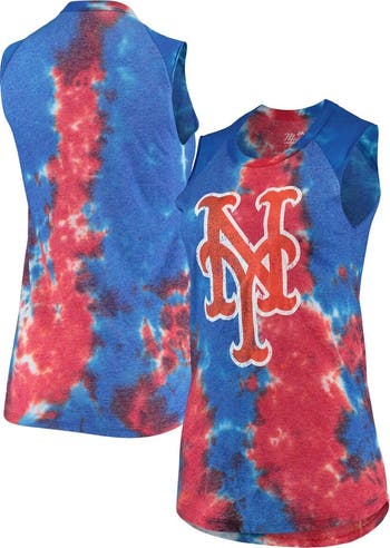Women's Majestic Threads Red/Blue New York Mets Tie-Dye Tri-Blend Muscle Tank Top