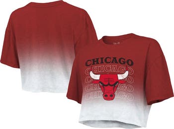 Women's Majestic Threads Red/White Chicago Bulls Repeat Dip-Dye Cropped T-Shirt