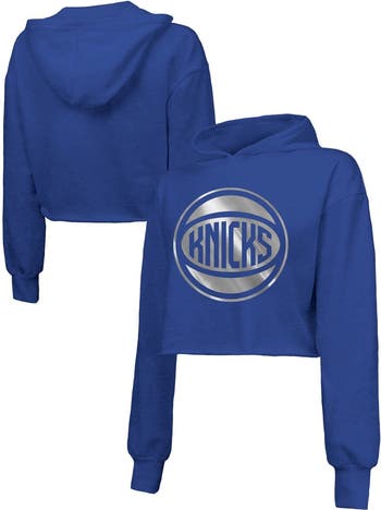 Women's Majestic Threads Royal New York Knicks Tri-Blend Cropped Pullover Hoodie