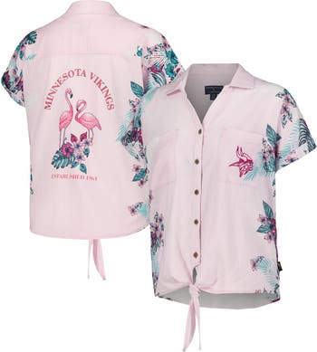 Women's Margaritaville Pink Minnesota Vikings Stadium Tie-Front Button-Up Shirt