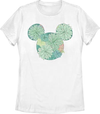 - Own the moment with this stylish new women's t-shirt that is perfect for all occasions! Featuring the Mickey Mouse silhouette logo filled with succulent plants across the front.