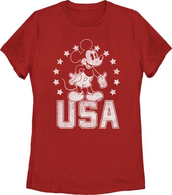 Who knew that dressing "mousey" could be so cute!? Celebrate Walt Disney's most iconic character with this officially licensed Mickey & Friends Fourth of July USA Mickey Mouse Women's Tee, featuring a retro Mickey Mouse encircled by stars. This graphic tee is perfect for the 4th of July, so grab one for yourself or a loved one today!
