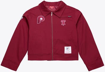 Women's Mitchell & Ness Burgundy Philadelphia Phillies Script Mechanic Cropped Full-Zip Jacket