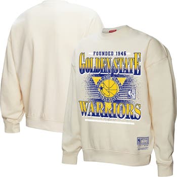 Women's Mitchell & Ness Cream Golden State Warriors Oversprayed Pullover Sweatshirt
