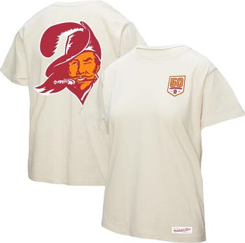 Women's Mitchell & Ness Cream Tampa Bay Buccaneers 50th Season Pirate Oversized Boyfriend T-Shirt
