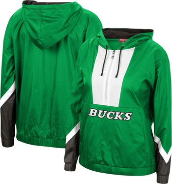 Women's Mitchell & Ness Green Milwaukee Bucks Half-Zip Windbreaker 2.0 Hoodie