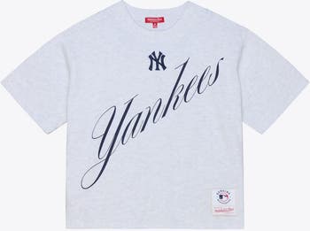 Rep your New York Yankees pride with the Script Cropped Boxy T-Shirt from Mitchell & Ness. Designed for the ultimate fan, this tee features a relaxed, boxy fit that's perfect for layering during those breezy game nights or rocking a laid-back street style. An embroidered team logo sits proudly on the center chest, while the printed team script across the body and woven tag at the bottom left hem add those authentic finishing touches. It's a comfy, stylish way to show your love for the New York Yankees, all season long.